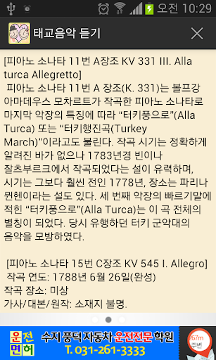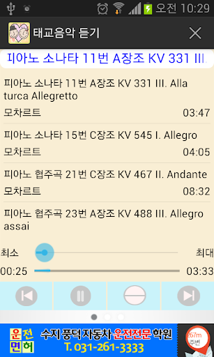 此應用程序允許在懷孕期間的產前建議。情商taeyaui,這對於那些熱愛音樂的嬰兒,增加產前檢查。你看,與其他的胎教音樂系列。寶寶和你一樣。 0。概述 聽音樂為主體的房子是由系列。 提供基本的播放器是免費的廣告,但提供以下功能。 房子是不會提供一系列付費廣告。然而,重複功能粗糧,是有限的。 此外,對自己內置的音樂,以及時購買家用系列系列的默認播放器,你可以在家裡聽音樂。 因此,建議使用默認播放器。 一首歌曲存儲在默認播放器。請使用不同的系列,作為房子。 答: MediaPlayer的行動 - 聽力:聽音樂時, - 暫停:暫時停止聽音樂,當你想 - 停止:當你要停止聽音樂 - 續:然後又停了下來,聽音樂,當你想 預聽的歌曲:“重複”的模式,當你想聽到的老歌 - 以下歌曲聽到:“當你想聽到的下一首歌曲重複”模式兩個。集 2.1聆聽模式 - 全穀物重複:重複所有歌曲,無論選歌告訴。 - 宋選擇重複:重複播放選定的歌曲告訴。 - 一次全穀物:歌曲選擇,只有一次,不管這首歌告訴所有。 - 宋選擇一次選擇的歌曲告訴只有一次。 - 聽到的一首歌:如果你選擇你要聽的歌,這首歌告訴。 - 我玩過的人聽:hangokssik想聽到的,當你要聽音樂選擇 2.2迭代次數 - 設置反复聽(選擇1〜10)聽2.3小時 - 設置的時間來聽音樂:設置的分鐘數的迭代次數,並採取優先。如果設置為0,迭代次數的應用。 2.4聽音樂 - 存儲在內部存儲器和SD卡聽音樂演出。 - SD卡目錄下,在聽音樂的懷孕。 - 系列應用程序複製到SD,這樣你就可以聽音樂 2.6設置為了聽音樂 - 設置之間的順序存儲在內部存儲器中存儲的音樂和SD卡音樂 - 通過點擊黃色正方形在左邊音樂的選擇要修改的順序出現,通知您 - 它是基於 +向上鍵:向上移動選定的歌曲。 +向下鍵:向下移動到選定的歌曲\ n \ N 2.7選歌 - CheckBox的歌曲選擇,是選擇,切換 2.8音量控制 - 調整聽到的音量大小。 2.9進度欄 - 播放時間,充分的時間,播放進度條顯示的情況。 - 改變了一秒的時間間隔的狀態。 2.10回頂端 - 返回到初始屏幕三。幫助四。結束 第一個版本V1.0 1.0.1修復故障壁紙 V1.0.2修正秩序的背景 V1.0.4 umjil音樂列表屏幕為黑色時症狀消失的變化(刪除)