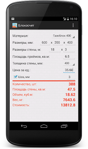 - рассчитывать количество блоков (кирпичей, пеноблоков, газоблоков, шлакоблоков, пенопласта и других строительных блоков);