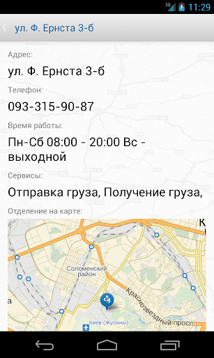 Программа позволит каждому заинтересованному клиенту в удобной форме ознакомиться со всеми представительствами компании, найти ближайшее отделение, просчитать стоимость и срок доставки грузов, проследить местонахождение груза по номеру декларации, посмотреть расписание движения пассажирских перевозок по Украине, подобрать свой рейс отправки и прибытия, купить online билет на выбранный рейс.