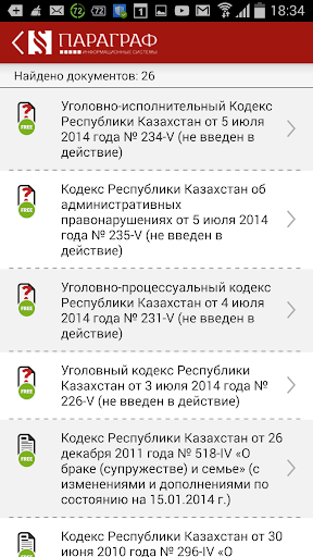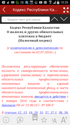 Мобильная версия информационной системы Параграф расположенной на сайте online.zakon.kz
