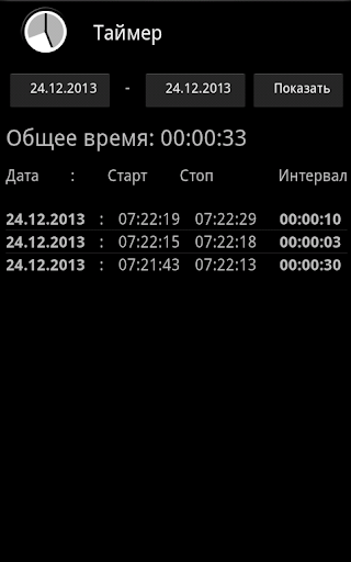В статистике можно посмотреть сумму часов от "старт" до "стоп" за заданный интервал времени.