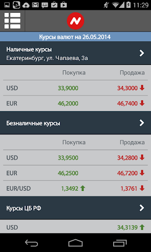 -покупка/продажа валюты, просмотр актуальной информации о курсах обмена валюты во всех офисах банка;