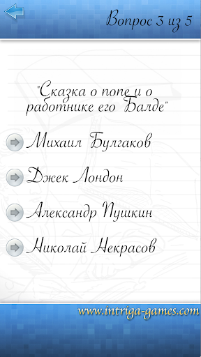 Серия игр "проверь себя" от Intriga-Games предлагает вашему вниманию игру "Проверь себя: авторы классических произведений" (писатели и произведения). На этот раз, вам предлагается проверить знания поэтов и писателей классиков в рамках школьной программы. Думаете это слишком просто? Мы тоже так думали :)