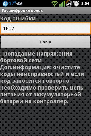 В программе содержится расшифровка диагностических кодов ошибок электронных систем автомобилей ЛАДА.