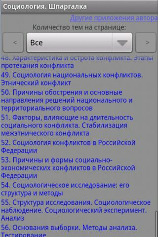 Приложение- шпаргалка, содержащая 57 основных тем по дисциплине Социология. Удобный интерфейс сделает удобным и быстрым поиск нужной информации, необходимый на экзамене или семинаре.