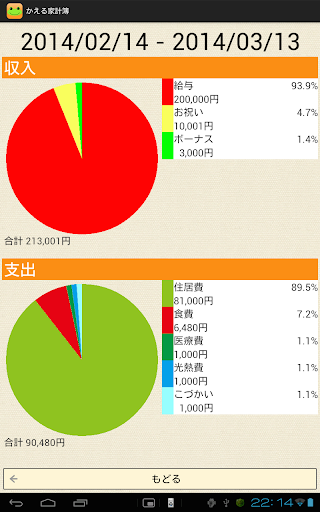 収支グラフ表示機能より、ひと月に、何に、いくらお金を使ったのかが一目でわかります。
