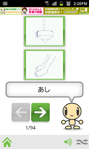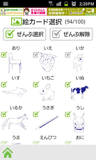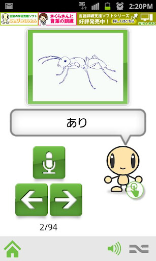 パソコン版にはない訓練として、表示されている絵カードの名称を、音声でマッチングさせる「しゃべってみよう」があります。