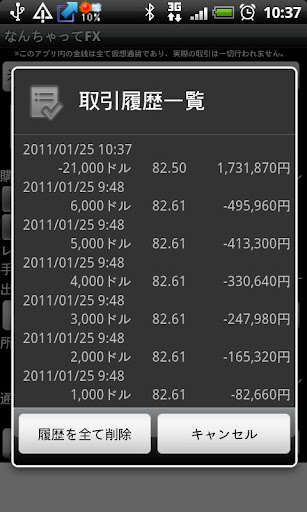 気に入らない場合は取引履歴一覧から一部または全て削除する事ができます。