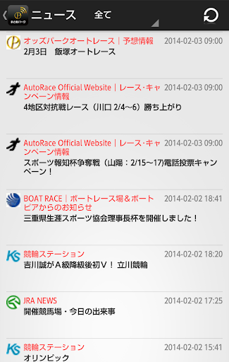 ・ニュース表示(JRA、地方競馬(keiba.go.jp)、keirin.jp、競輪ステーション、autorace.jp、BOAT RACE、オッズパークロトなど)