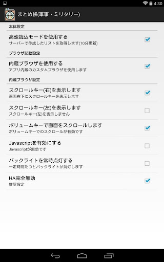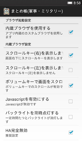 内蔵ブラウザ使用の場合は、ボリュームキーでのスクロールの他に