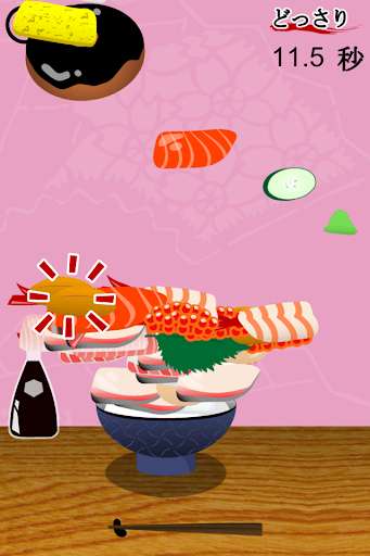 制限時間内に、大トロ、うに、いくらなど高価なネタをもりもり積んで、自分だけの高級丼ぶりを作ろう!