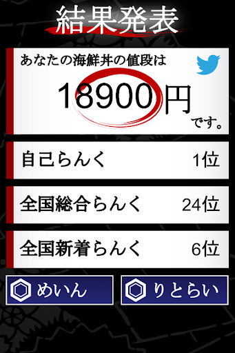 丼ぶりが完成したら、ランキングに登録して全国の猛者と値段対決!