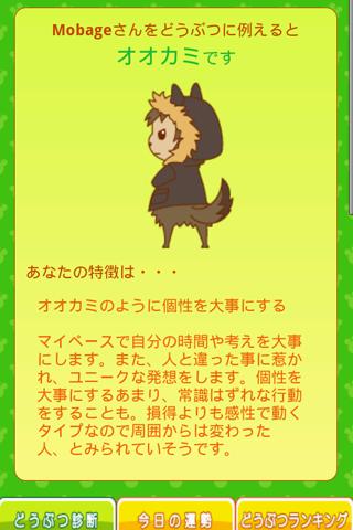 免費玩わくわく☆どうぶつ診断 for Mobage(モバゲー) App