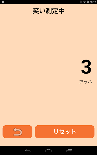 3.声の調整が終わるとすぐに計測画面になります。画面に向かって笑うと、アッハ値が表示されます。