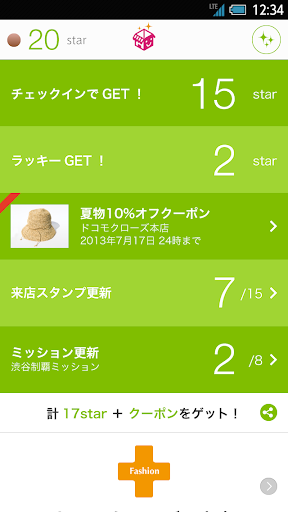 ※お店が近くにない場合も、毎日挑戦できるゲームでstarがもらえるチャンスがあります。