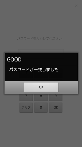 パスワード入力に成功すると、「パスワードが一致しました」と表示されます。