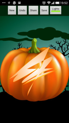 您也可以使用“灯光”按钮,打开或关闭灯光和获得更好的视野,你的南瓜。一定要与你的朋友分享你的南瓜!