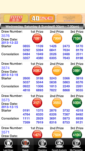 ***We do not warrant the accuracy, completeness of the information contained in this Apps,The official results from Singapore Pools