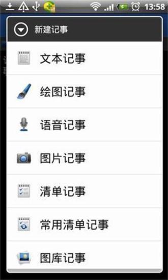 在Note Everything中,你可以通过文本、图片、语音三种便笺方式记录下自己所需保存的信息,亦可在保存便笺之后通过邮件和短信等方式把它发送到一个指定的目标。除此之外NoteEverything还支持你从不同的路径导入和导出所需要的信息。