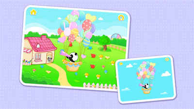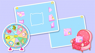哈哈,我们到达了美丽的花园,但是还需要小朋友们的辛勤装扮,只要用手指轻轻地拖动屋檐上的装饰品,把它们移到草地上,惊喜就会出现哦。
