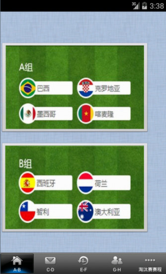 这款软件可以不用联网就能看到巴西世界杯各小组分组情况,并且可以看到各小组的赛程时间,让热爱足球的你不会错过自己支持的球队的比赛,另外,还有淘汰赛全赛程,希望能够方便广大足球迷们使用!