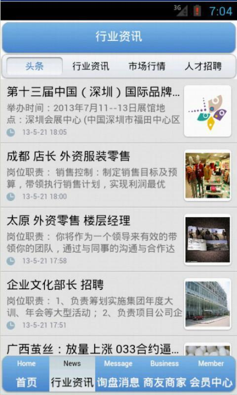 中国服装行网客户端是以服装行业为主题的专业网站,您可以查阅到海量精选有关服装行业的行业动态、价格情报、展会信息、供求信息,在线商家商友交流询盘,随时随地位置交友,企业店铺管理等该客户端面向全国招商各大企业可在该客户端上发布供求信息,发布广告,产品拍照上传,微博互动,让各大企业以及广大客户更为便捷 该客户端向广大客户展示了一个大型的服装移动互联网门户平台,以便捷的浏览方式、强大的应用功能,最新的资讯信息, 为广大客户展开了一个丰富的服装画卷,时时刻刻的为您更新,让您爱不释手