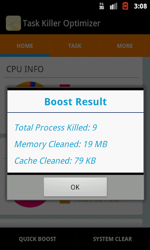 最簡單和最完整的任務管理工具今天。免費試用!任務殺手優化是每個Android用戶一個非常重要的經理的應用程序。任務殺手,主要用來殺死這在後台運行的不必要的應用程序。任務殺手Optimizer是最好的Android殺手任務處理在後台運行的不必要的應用程序。有人認為,任務殺手在Android上非常重要的。通過在後台運行的應用程序關閉,您將得到更好的性能和電池壽命,速度助推器手機。Android使用了大量的RAM或存儲處理同步數據,語音,默認功能,環境,養護和後台運行的應用程序。您可以使用任務殺手優化和管理的Android應用程序,以殺死活躍的應用程序或刪除緩存文件在你的Android手機。智能機器人助手。如果你不清理或任務的殺手。你的手機會慢慢因為一些設備的最小內存和限制使用的RAM。改進和更快的任務表演電話,任務殺手優化是一個工具,殺死運行的應用程序。加快和節省電池。點擊小工具殺死所有的應用程序 - 屏幕關閉後,支持自動殺。現在,快速下載和更快的你的手機吧!