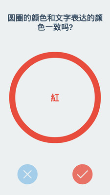 这款游戏玩法是判断圆圈的颜色和文字表达的颜色是否一致,当左脑和右脑同时对颜色进行识别时,会打架吗?有没有感觉自己的反应越来越慢,来试试吧。你会爱上的!