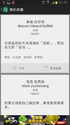 這個小工具提供您閱讀名人的智慧結晶,讓你每天都活得很精采,過得更充實。