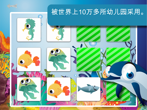 海洋生物的每個字符,精心設計,使用高清圖片,因此,所有的海洋生物圖像和字符都可以幫助你的孩子要參提高他們的記憶力和改善注意力的樂趣。不用多久,隨著你的孩子在解決不同記憶任務取得進展,級別變得更加困難,所以他就可以學更多樂趣。