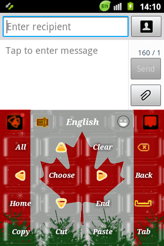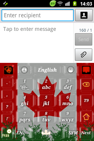 享受這個應用程序的靈感來自於加拿大的冬天。紅,白,綠,雪和腳樹,加拿大的國旗和白色的字母是這個鍵盤的成分。