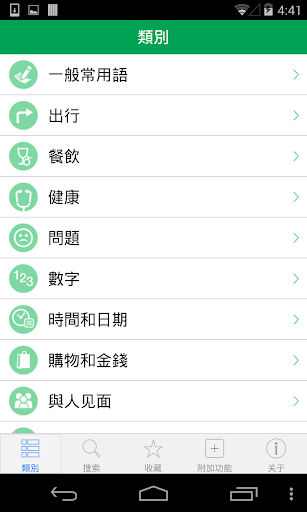 ✓ 按照日常會話場景分類,包括:基本資料、旅行、餐飲、健康、問題、號碼、時間和日期、購物與金錢 — 這堪稱目前最完美的旅行翻譯軟件。