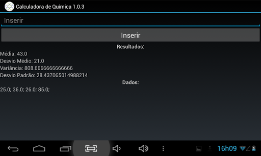 此應用程序開發和發布,以幫助學生誰在化學和選修課程,需要反复計算的解決方案,在準備使用的濃度,群眾或卷。還包括功能算術平均數,方差,偏差,標準偏差。