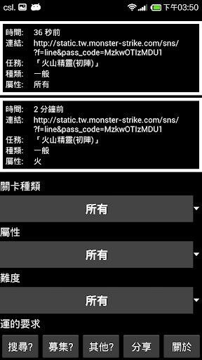1. 可以按關卡種類, 屬性, 難度以及運的高低發起募集請求