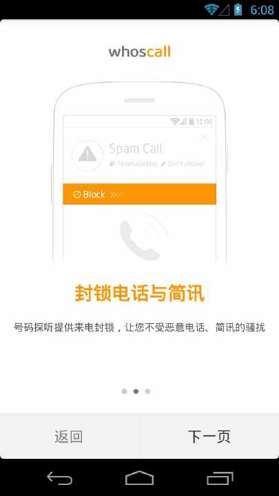 主要特色: ??来电时迅速辨识陌生电话,杜绝诈骗与骚扰 ??无需网路连线即可使用的黑名单与黄页资料库(可免费试用) ??完整的电话号码资料库,汇集全球6亿笔电话资料 ??封锁恶意来电,杜绝烦人骚扰。向诈骗电话、骚扰电话与未显示号码来电说再见! ??电信辨识功能(目前适用于台湾,?香港,?印度,?越南,?泰国,?印尼,?中东等国),辨识对方所属电信商 ??标记分享,凝聚用户力量,共创一个值得信赖的沟通网络 ??桌面查看小工具(widget),快速观看来电资讯、回拨等 楹涡枰「读取同步处理设定」权限 whoscall?3.8.3?之后新增了同步资料的功能,可同步的资料包括黑名单列表、标`、主记与常用号码群组,透过?android?官方的同步机制,让您即使更换手机、重新安装也可以恢驮有资料。因此需要您的「读取同步处理设定」权限。 《whoscall?专业版》? whoscall专业版可以直接从原本?whoscall?升级,开启进阶功能服务。(专业版功能目前仅开放台湾、香港、美国、日本、沙乌地阿拉伯及科威特,其他地区将於近期内开放)。