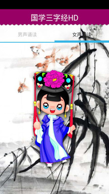三字经是中华民族珍贵的文化遗产,短小精悍、琅琅上口,千百年来,家喻户晓。本软件使用著名朗诵家的原声诵读,配有每一句诗文的详细解释,是家长教育启蒙小朋友的绝佳教材!