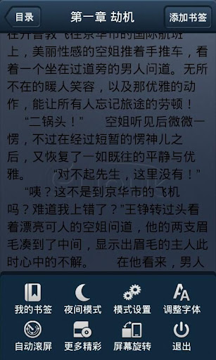 5)多种阅读模式可供选择,随意设置字体大小、屏幕亮度;横竖屏切换、自动滚屏;尽可能的满足你的阅读习惯。