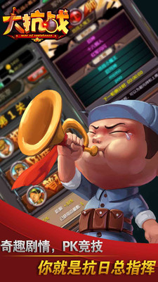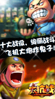 将军顾问团指导,千万巨资打造,《大抗战》被誉为中国第一抗日手游!游戏完美还原8年抗日历史,首创国共联军玩法,百位名将收集、史诗级战役、华丽画面、动感战斗!玩《大抗战》杀鬼子,人人都是抗日总指挥!