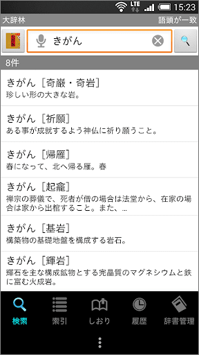 「五十音」「ABC略語」「地名」などのさまざまなジャンルを文字入力をしないでタップだけで語句を調べることができます。