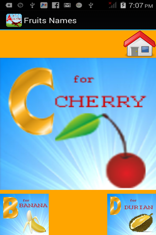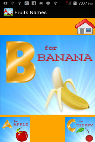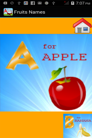你想學alphabetes水果?孩子們的學習,水果名稱識字免費的應用程序給你一個機會,讓孩子學習和認識字母和通過看。通過這個學習的孩子,水果名字的卡片圖片免費的應用程序可幫助非常迅速和容易記憶的字母孩子們讀書的話了解。他們幫助書面信件了。