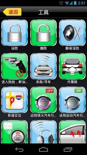 本公司安卓星汽车手机智能车控系统具有独一无二的汽车手机远程控制、一键启动、无钥匙进入、多重警戒智能防盗以及GSM/GPS车辆远程监控管理等各种功能,直接人车双向互动,无需第三方平台支持即可实现手机远程启动、熄火,开关空调、远程开关车门锁、开尾箱,远程断油供油,远程监听、跟踪定位车辆 、车辆报警手机提示以及车辆集中监控管理等各种智能化实用功能。产品适用于所有车辆,安装简便且不改动原车任何线路。