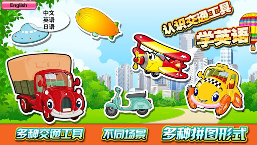 免費玩宝宝交通工具识字拼图游戏-儿童学习英语,日语,汉字同时玩游戏 APP玩免費