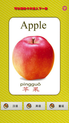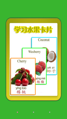 宝宝早教机是一款包含了日常生活中绝大部分的水果图片已经对应的标准发音. 早教机包含了三个部分. 第一部分: 学习水果卡片
