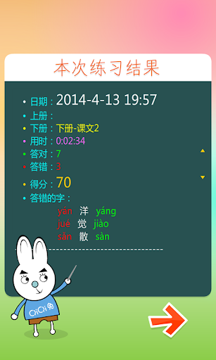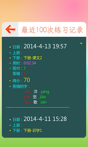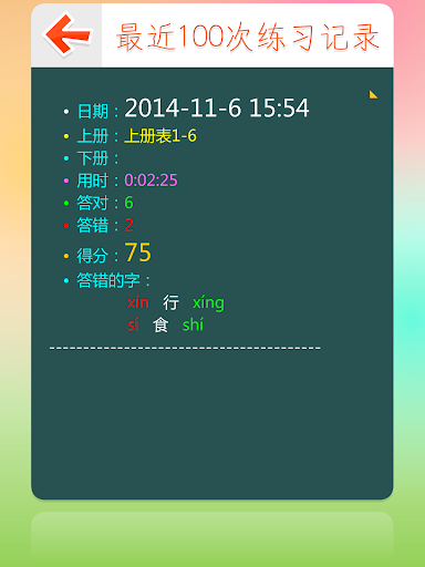 ·自动保存每次练习成绩和答错的生字与拼音,用于纠正错误、监督学习;