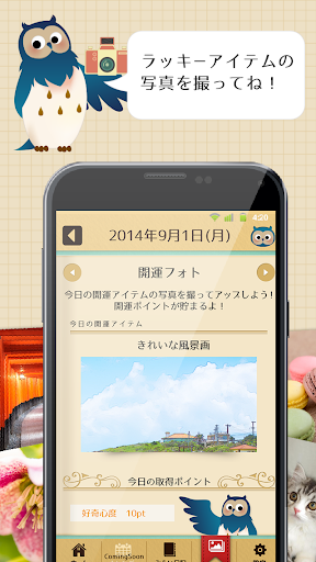 占星術による、あなただけの今日のラッキーアイテムが表示されますので、アイテムを探しながらいつもと違う風景を楽しんでみてください。