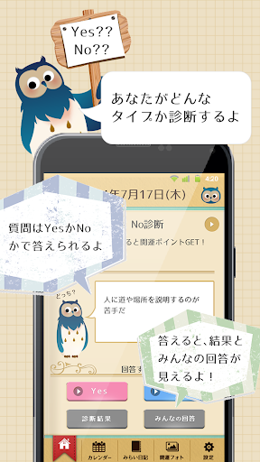 毎日違う内容のYESかNOで答えるだけの診断ができます。