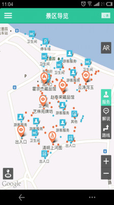 4.导游导览功能:地图范围内提供定位功能,便于你找到当前位置,以及园区内景点、处理服务站(包括休息点、厕所)的位置;