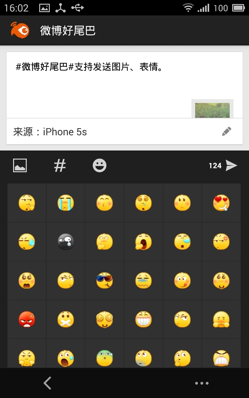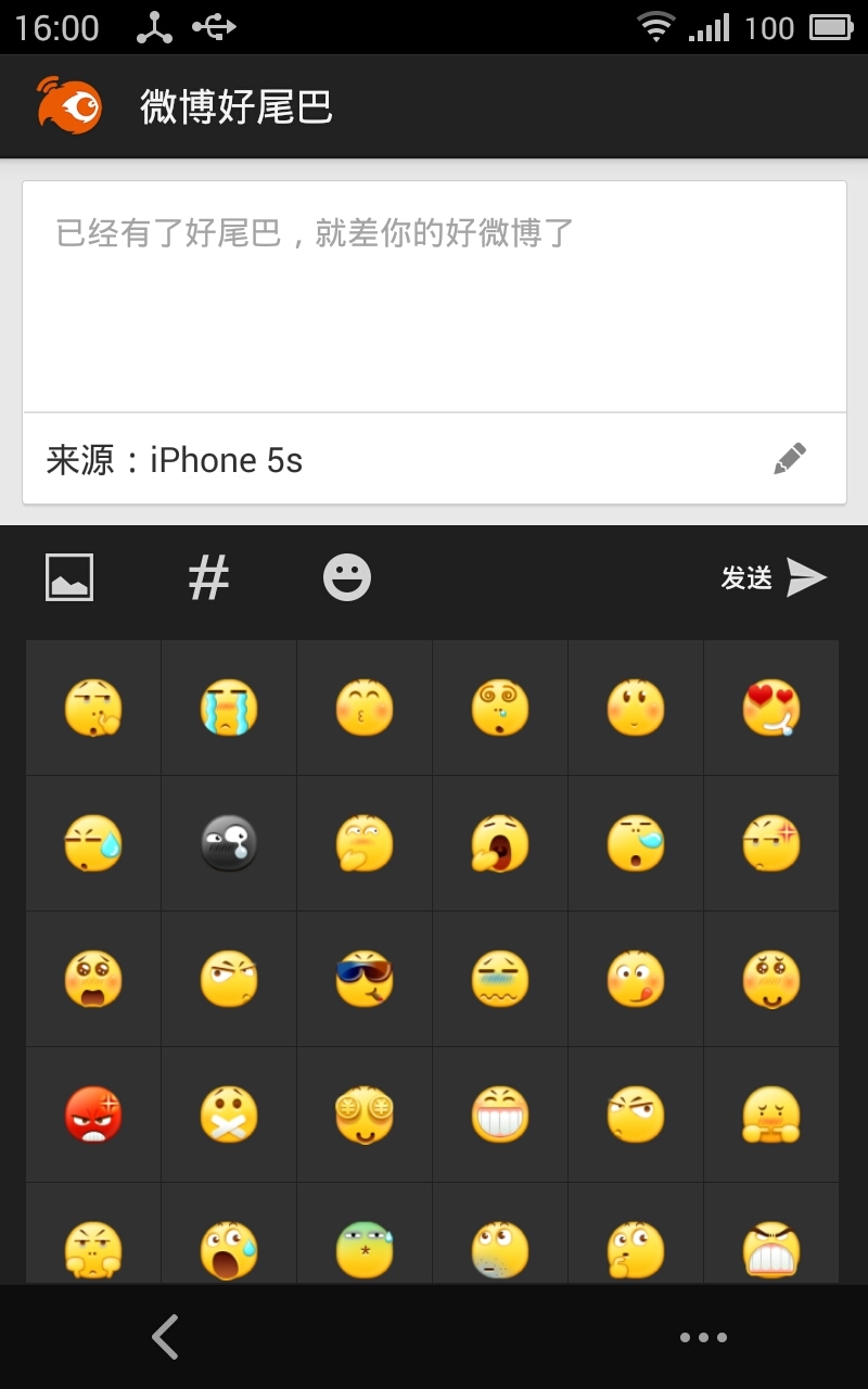 #微博好尾巴#新浪微博尾巴来源任你先,让你瞬间成为微博尾巴达人,潘孔B必备!任何Android手机装上这个"微博好尾巴"都可以发布来自"iPhone5s"等来源的新浪微博啦!通过"微博好尾巴"发布的微博,可以选择微博来源。支持发送图片、表情。