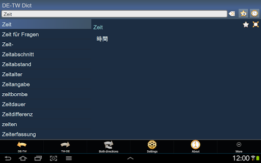 這是 德文 - 中文(繁體) 以及 中文(繁體) - 德文 字典; German - Chinese Traditional and Chinese Traditional - German dictionary / Wörterbuch Deutsch - Chinesisch (traditionell) und Chinesisch (traditionell) - Deutsch。該應用程式離線,無需網際網路連接。
