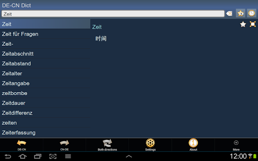 这是 德语 - 中文 以及 中文 - 德语 字典; German - Chinese Simplified and Chinese Simplified - German dictionary / Wörterbuch Deutsch - Chinesisch und Chinesisch - Deutsch。该字典可离线使用,不需要互联网连接。